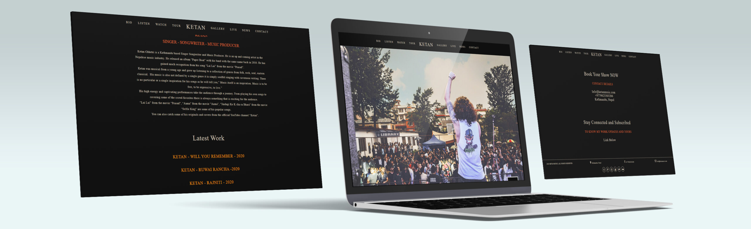 Modest design, confident color palette, and elementary typography to match the style of the artist. This website has been built using PHP and AngularJS for dynamicity. You can watch or listen to the music on their website itself.